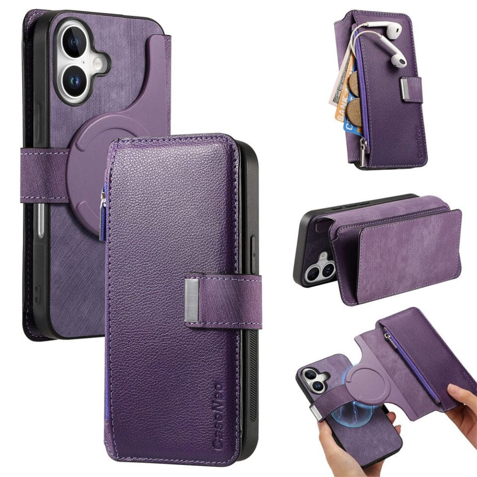CASENEO For iPhone 17 Case Magnetic Detachable Zipper Wallet Leather Flip Phone Cover