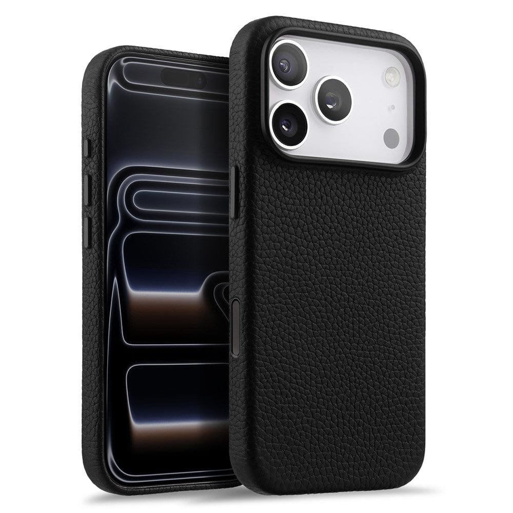 MELKCO For iPhone 17 Pro Magnetic Case Genuine Leather Phone Cover with Metal Keys / AI Button