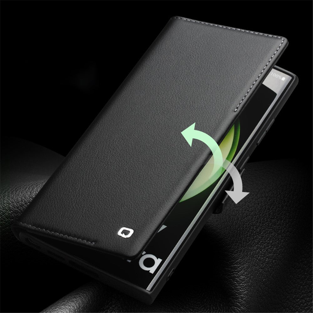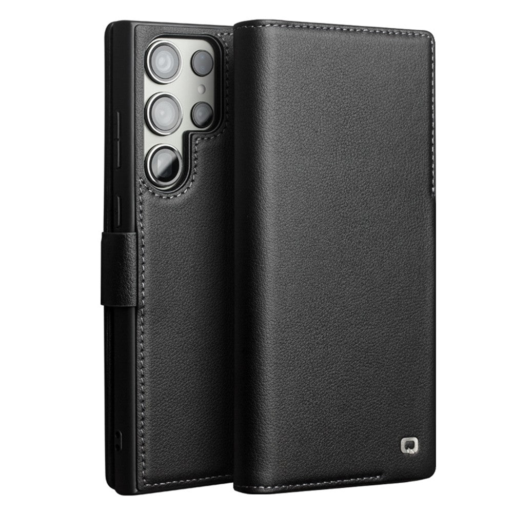 QIALINO For Samsung Galaxy S22 Ultra Wallet Case Genuine Leather Magnetic Closure Flip Phone Cover